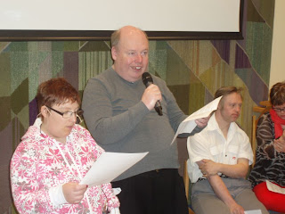 HÄR SER VI LEIF HAGBERG OCH ÅSA WASS FÖRSÖKER OCH ATT FÅ OSS PÅ RÄTT STÄLLE NÄR VI SJUNGER.